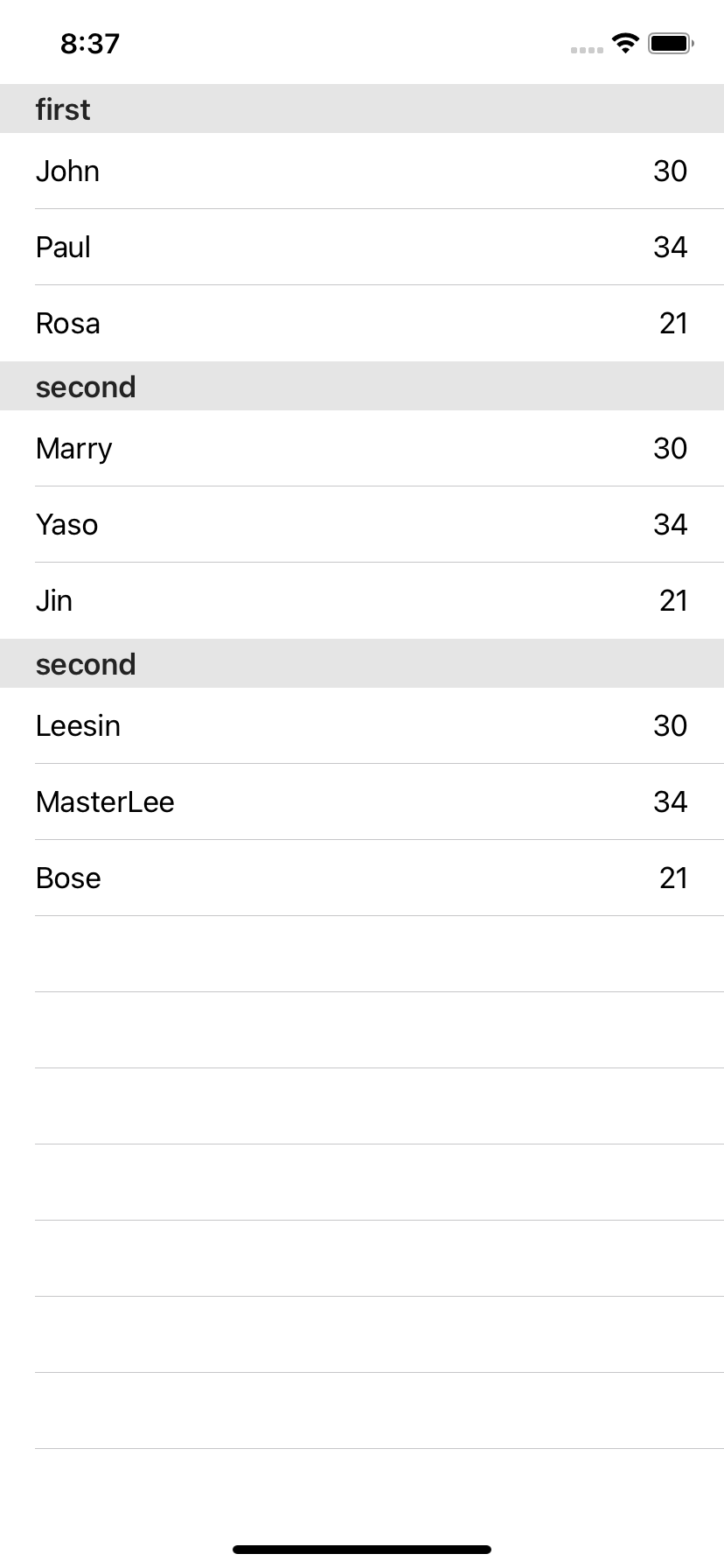 마지막으로 더미데이터를 만들고 테이블뷰와 바인딩해주면 원하는 결과가 완성된다.