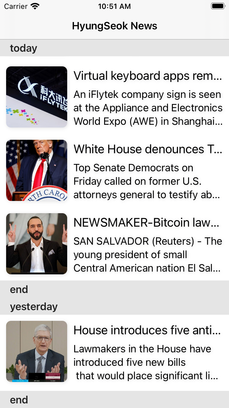 이번 RxFlow 예제는 이제까지 포스팅한 RxCommunity 라이브러리를 함께 사용해서 제작한 뉴스앱입니다. 시작하시기 전에 https://newsapi.org 링크로 들어가셔서 로그인을 하시면 개인 Token을 받으실 수 있으니 사용하시면 되겠습니다:) RxFlow는 몇 번을 나눠서 포스팅할 예정이니 천천히 읽어봐주세요.