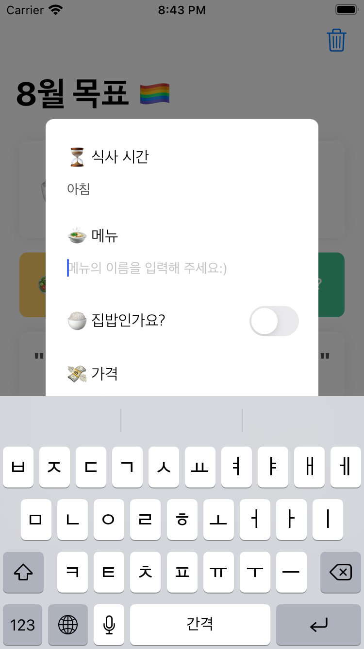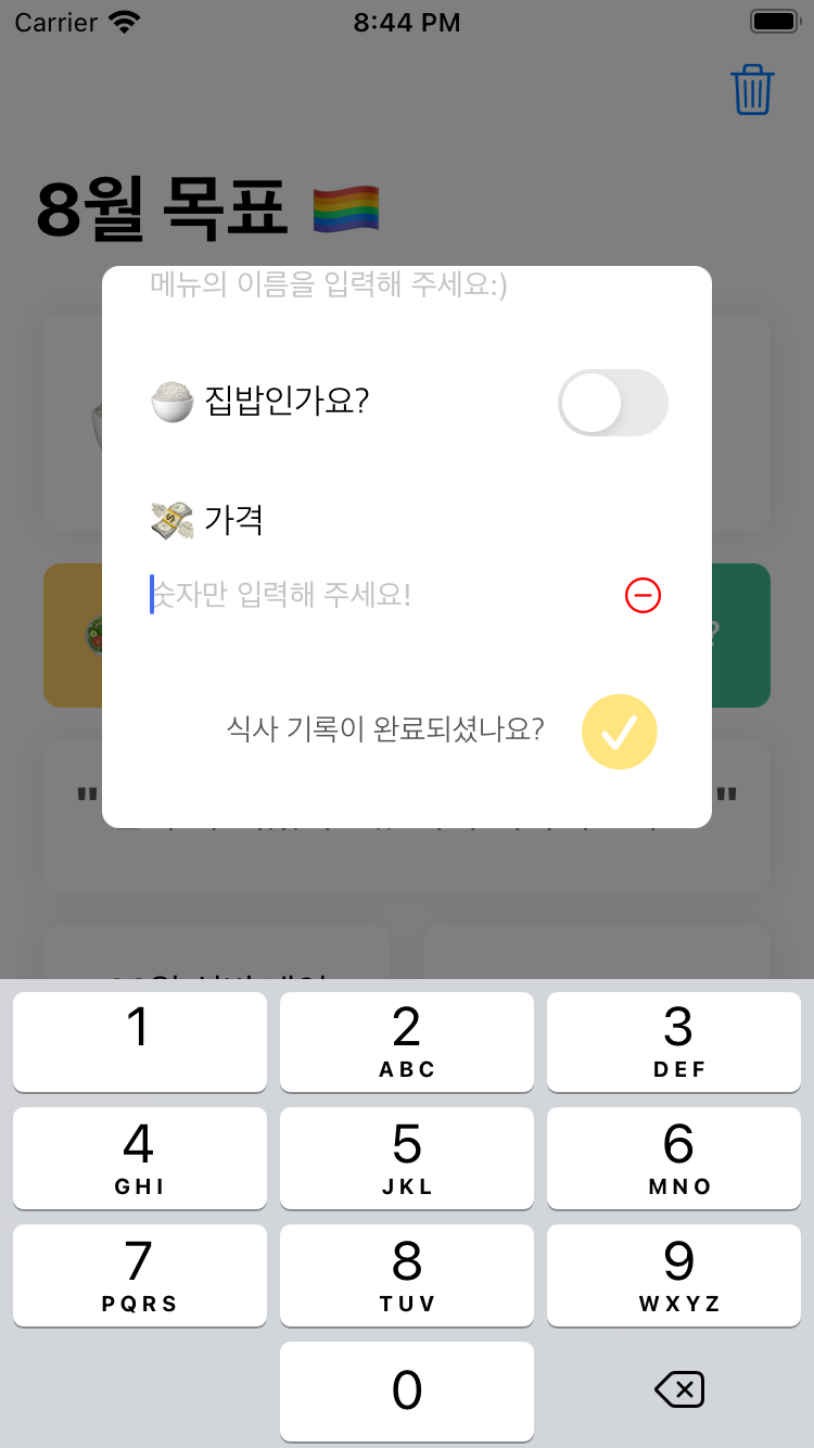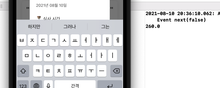 올렸을 때는 260으로 내렸을 때는 따로 출력되지 않네요! 그리고 숫자 키보드 높이도 다르게 입력되는걸 볼 수 있습니다:) 그럼 이제 실제로 프로젝트에 적용해 보겠습니다!